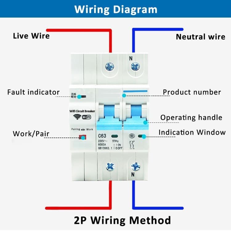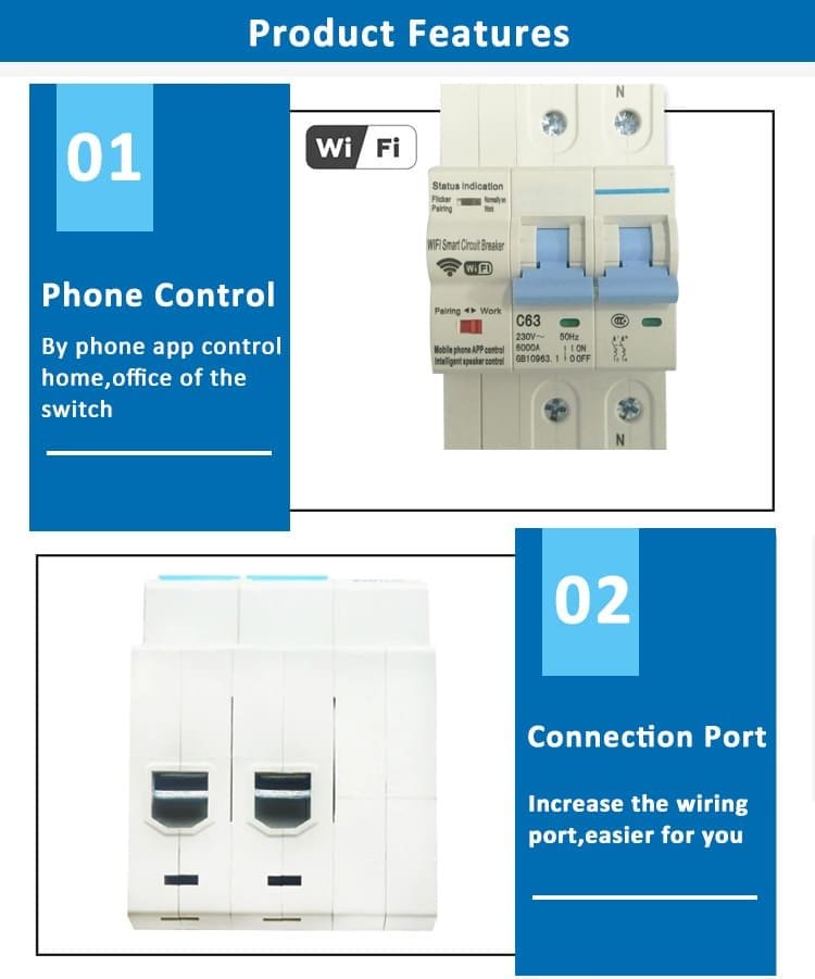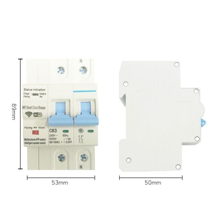 Totalmente compatible con Tuya Smart, Smart Life, Amazon Alexa y Google Home, este disyuntor inteligente WiFi puede controlarse también por voz y no requiere pasarela adicional. Su diseño de 2 polos (fase + neutro) y capacidad de 63 A garantizan protección completa y fiabilidad.
