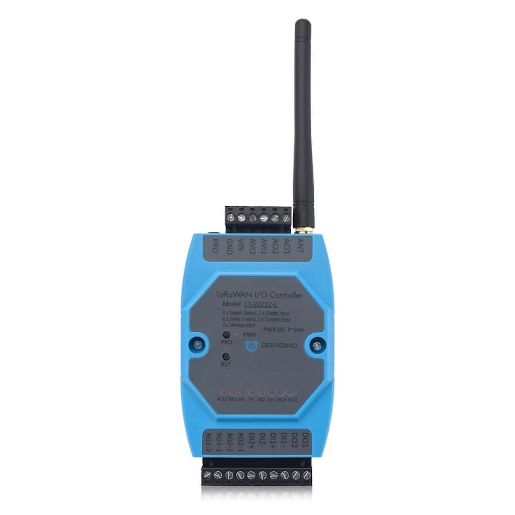 Dragino LT‑22222‑L es un controlador I/O LoRaWAN robusto con múltiples entradas y salidas digitales, relés y analógicas, ideal para automatización, sistemas SCADA y redes IoT industriales.