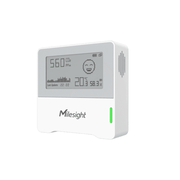 El sensor de calidad del aire interior Milesight AM103 LoRaWAN® proporciona una monitorización ambiental 3 en 1 con una pantalla integrada, ideal para hogares inteligentes, oficinas e instalaciones sanitarias.